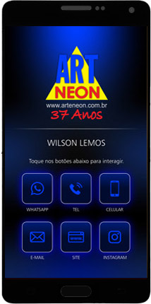 Produto digital contendo botões com links que permitem interação com números de telefone, celulares, whatsapp, redes sociais, sites ou blogs, plataformas de vídeos, endereços físicos com GPS e outros links específicos.